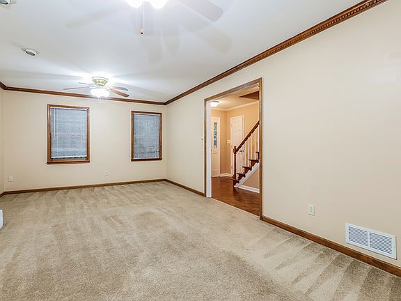 Upstairs, the bedrooms provide generous square footage, soft carpet underfoot, and multiple closets for storage. The bathrooms feature granite-topped vanities and updated fixtures, while the half bath on the main floor adds convenience. The home's unique multi-level deck off the back opens to a wooded yard, offering a private escape ideal for relaxing or entertaining beneath the trees.