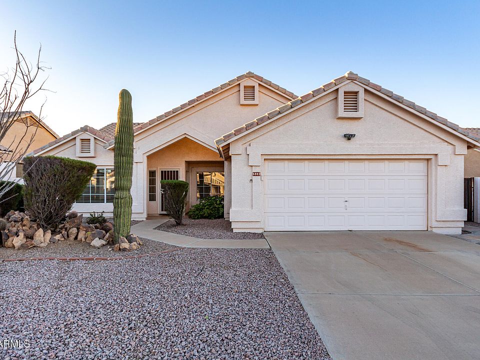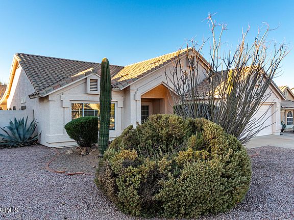 Don't miss your chance to own this charming 3-bedroom home in Red Mountain Ranch! Displaying a 2-car garage, an RV gate and a low-maintenance landscape. The interior boasts a spacious living/dining room with vaulted ceilings and abundant natural light. Neutral paint and tile flooring in high-traffic areas. The great room has a fireplace and seamless access to the backyard. The eat-in kitchen includes wood cabinetry, built-in appliances, and an island w/ breakfast bar. The sizable main bedroom hosts a plush carpet, direct access to the backyard, a private bath with/ dual sinks, a soaking tub, and a walk-in closet. This stunning backyard features a covered patio, lush desert plants, decorative rock landscaping, and artificial turf. This lovely residence awaits you! Don't wait!