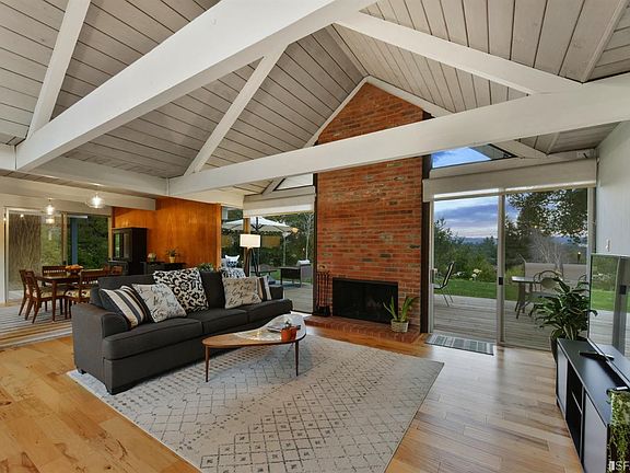 Breathtaking mid-century modern masterpiece in coveted Greenridge, designed by A. Quincy Jones & built by Joe Eichler in 1963. Amazing quiet cul-de-sac location, w/ striking curb appeal, this 5 bed, 2 full bath single level home of nearly 2000 sq ft will surely impress the moment you enter the open air atrium, & into the spacious great room w/ cathedral ceilings, brick fireplace, & pastoral views of the canyons & hills. Remodeled & updated chef's kitchen & 2 split full baths w/ custom cabinetry, quartz countertops, new tile, & designer appliances & fixtures. Other features & upgrades include stunning hickory floors, fresh paint inside & out, insulated foam roof, high-efficiency boiler/water-heater, new lighting & classic globe lights, unpainted ceilings, & more! Fabulous outdoor space that's ideal for spending time w/ friends and family, and truly an entertainer's dream. New deck, fencing, market lights, meticulous landscaping, digital irrigation, & views of the hills, canyons, & Bay.