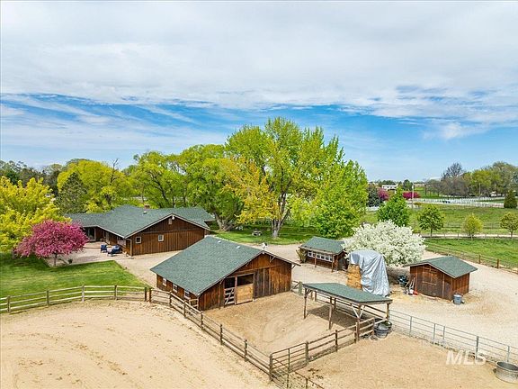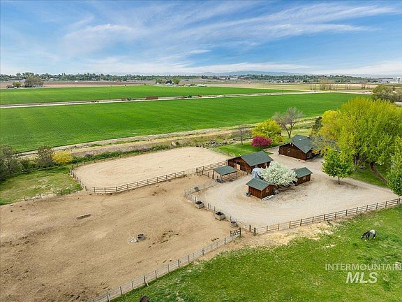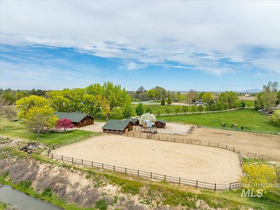 Country living in the city! Enjoy the best of both worlds with this 4.86 acres equestrian property in northwest Meridian; close to restaurants, shopping and freeway access. Two fully fenced pastures with irrigation rights offer the potential to grow your own hay and rotate horses as needed. Outdoor structures include an arena, barn with walkout paddock area, tack room, workshop and hay storage area. The 3 bed, 2 bath home features open concept living, a beautifully remodeled kitchen with huge 10' island w/ granite countertops, white cabinets and quartz on the perimeter counters. The second bedroom has it's own en-suite bath for guests. Refinished hardwood flooring throughout, recently repainted interior & newer windows. Large picture window in the great room lets in the natural light. Enjoy the Idaho summer and country setting from the rear patio. This peaceful setting with mature landscaping doesn't come around often! Possible opportunity for seller carry at below current interest rates. Call for details.