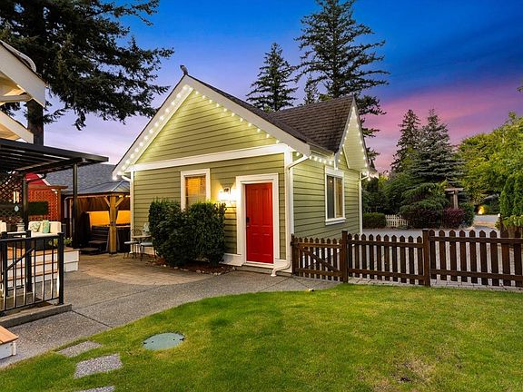 Corner lotDetached garageStunning curb appealProfessional landscapingUpdated exterior stoneworkWater featuresMature fruit trees