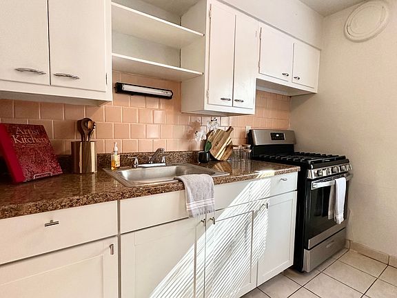 Additional storageWhite shaker cabinetryBeautiful original tilingStainless appliancesSpacious floorplansVinyl plank flooringImmaculate kitchen
