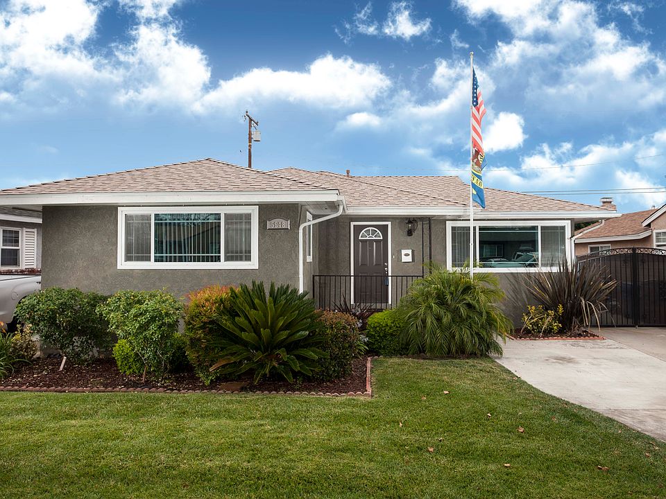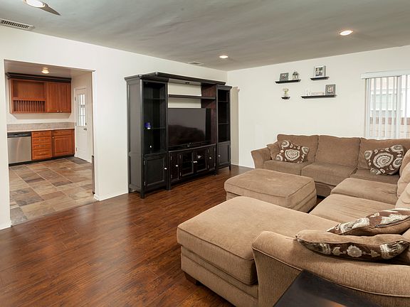 Welcome to this amazing, energy efficient home. Enter into a massive living space adorned with engineered hardwood floors and brightened with recessed lighting. The larger remodeled kitchen includes loads of beautiful cabinets, granite counters, newer stainless steel appliances, stone floors and an open dining area. You'll love your master suite with over sized closets/storage and full remodeled bath. Both additional bedrooms are more than spacious and the front bedroom has double closets. The main bath has been remodeled too. This oversized lot features a huge, newer, covered deck with the ability to have outside TV, patio lights, and mini fridge. There is a grassy area featuring an outdoor fire-pit with lawn furniture included. Lots of driveway parking and a rear two car garage with an attached storage unit behind. Best of all you'll love all your energy savings. This home went through the HERO program and includes the following NEW energy efficient upgrades: Solar panels, Roof, Insulated ceilings and walls, A/C, Furnace and Ducting. All completely paid for and waiting for you to benefit from the utility savings. Dual pane windows, lots of storage, boxed eaves, rain gutters and newer SOD are additional features. Close to great parks, shopping mall, restaurants and highly rated schools.