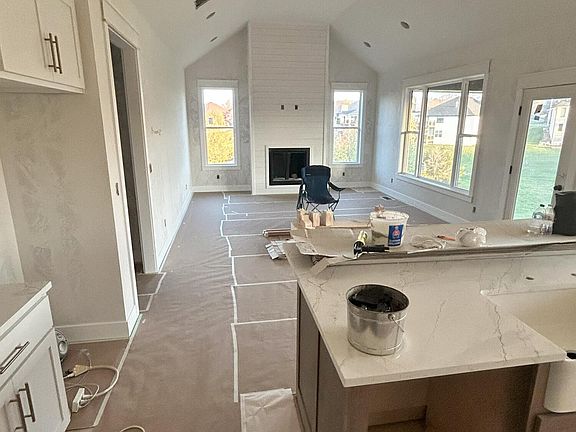 BEAUTIFUL, Brand new in (Gated) Lions Gate! Backs to trees! 5 BR , walkout basement! All brick/stone exterior with light flooring planned for master bedroom/ living room/kit/din/entry and hallways of main level. and on the stairs Quartz countertops, Shiplap fireplace on the main level and in the rec room downstairs. Interior paint; City Loft. Appr 4000 Sq ft. Split BR design with laundry room access to MBR closet/tiled shower & soaker tub in master. Wooden shelving thru out . MBR closet has wooden shelving and built-in dresser. 3 BR's on main level with 2 additional in basement. Generously sized wet bar in basement. Family room in the basement will have fireplace with shiplap surround. Upgraded Stainless appliances with gas range& walk-in pantry in kitchen. Planned colors are: white cabinetry , white/subway tile/ backsplash with white grout, white farm sink, tile in baths and laundry. Full sod, & irrigation .