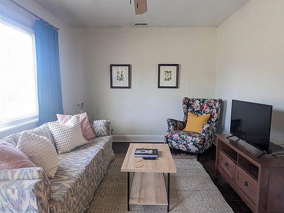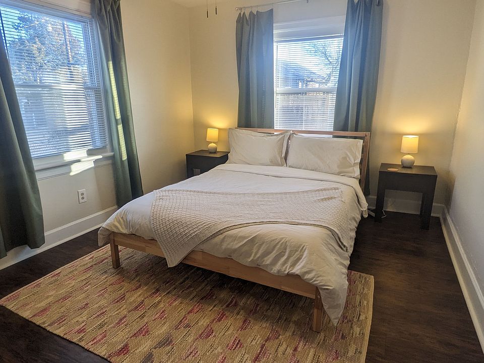 Has everything you need, just pack a bag! In unit washer and dryer, street parking, backyard, central heating and cooling.