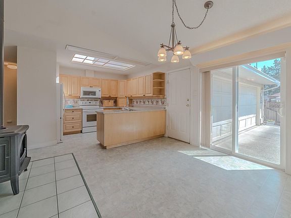 Large country-style kitchenEating nookAdjoining dining roomFruit treesFenced backyardMultiple skylightsBuilt-in vacuum