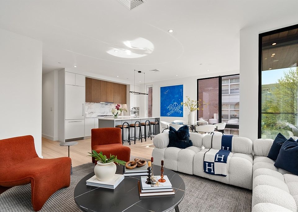 Newly completed & ready for occupancy! The Residences at 595 Albany, a collection of 10 meticulously appointed homes in Boston's South End. This stunning residence offers direct elevator access into approx. 1,048sf of open living space, 2 bedrooms, 2 bathrooms, a private balcony w/ trifold doors & exquisite attention to detail ensuring optimal proportions & flow. Large oversized windows flood this home w/ an abundance of natural light, highlighting the hardwood flooring & premium finishes throughout including a custom three-tone kitchen w/ top-of-the-line, integrated appliances & Calacatta stone countertops. En-suite to the primary bed, a luxurious, spa-inspired bathroom w/ a custom double sink vanity. Residents enjoy an exquisitely designed lobby with secured smart-access technology, package storage, and a common roof deck with a gas fire pit and grill, lounge seating and sweeping sunset views of the Back Bay skyline. Perfectly positioned in the SoWa's Art and Design District.