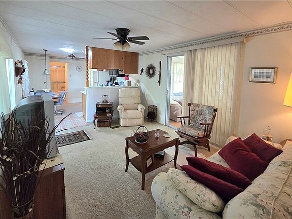 BEST PRICE -- Best Value for a MOVE-IN READY home in lovely LAZY DAYS MOBILE VILLAGE! Own this well-maintained single-wide on a quiet street w/no through traffic AND YOUR LAND while you Enjoy AFFORDABLE LIVING in the Sunshine State! Furnished & ready to move in! Enjoy the open living room & bright & airy eat-in kitchen with a solar tube light & pantry. This home features an enclosed porch PLUS a spacious Florida room with a pull-out couch. The split-bedroom floor plan with TWO Bathrooms is perfect for guests. Washer & Dryer are included and conveniently located in the breezeway shed. NEW windows & gutters. Solid Roof. Newer water heater & microwave oven. Ceiling fans throughout. Shutters provide storm protection and energy savings. All systems functional. Low-cost RV & boat storage on-site. Walk to the pool & enjoy a people-friendly, pet friendly 55+ community with 2 clubhouses, community swimming pool, shuffleboard, ponds, parks, nice landscaping, streetlights--life is good at Lazy Days! Buyers shop other parks, but they come back to Lazy Days~~A great place to live year-round or as a 2nd home for warm weather enjoyment!