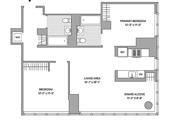 Stunning 2 bed, 2 bath apartment featuring a windowed kitchen, spacious living area, flexible corner dining alcove, in-home laundry, excellent closet space, and southeastern exposure.