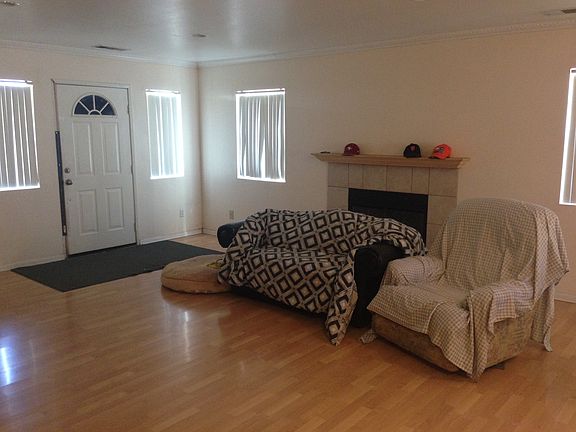 Situated on a hill with 180 degree views of City Lights and Hills. Beautiful 3 bedroom 2 bath home with an open floor plan and private backyard. Living room with tile surround fireplace, laminate flooring, crown molding and views. Kitchen with white tile counter tops, breakfast bar and eating area. Laminate flooring throughout the house with crown molding and mirrored closet doors in all bedrooms. Spacious Main suite with own bathroom and walk in closet. Main bath has dual vanity, white tile counter tops and tile flooring. Hallway bathroom with white tile counter tops and tile flooring. Two decks off of kitchen and main suite overlooking the backyard and a covered front porch with beautiful views. Other features are: 2 car garage, linen closet, laundry room, direct access to the garage, fully fenced yard with chain link fencing, chain link gate, and private backyard with views. Close to all amenities. Close to schools, shops, entertainment, freeways (60, 91 and 15), golf courses, and restaurants.
