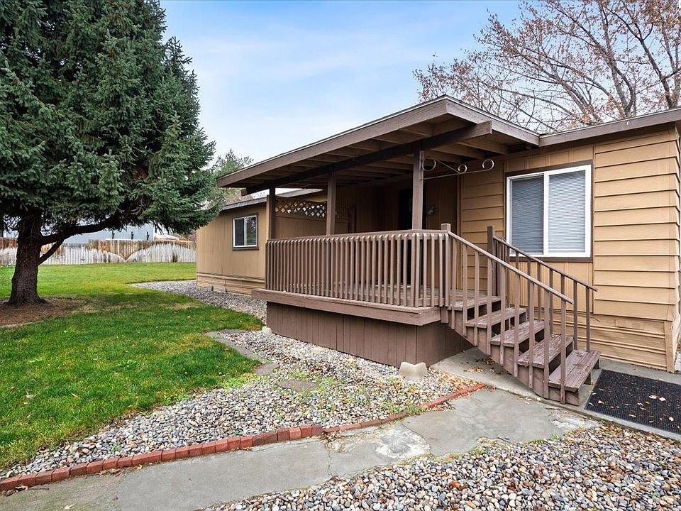 MLS# 289189 Welcome to this charming 3-bedroom, 2-bath manufactured home located in the peaceful Brotherhood neighborhood of West Richland, conveniently situated across the street from the community park and within walking distance of the beautiful elementary school. Offering 1,152 square feet of comfortable living space on a 0.26-acre lot, this home features a fully fenced backyard with new sod and an efficient sprinkler system, perfect for pets or outdoor relaxation. The driveway was regraveled in 2024, and the carport roof was reworked in 2023, adding durability and curb appeal. Inside, you'll find newer carpeting throughout, installed in 2023, along with a rebuilt stove top to ensure modern convenience. The master bathroom sink and water heater were replaced in 2022, and the heat pump, installed in 2018, provides year-round comfort. The roof of the house was also resurfaced with reflective elastomeric mesh coating in 2018, offering long-term peace of mind. Located in a quiet neighborhood, this home blends comfort, convenience, and a serene setting—just waiting for you to make it your own. Schedule a showing today!