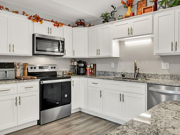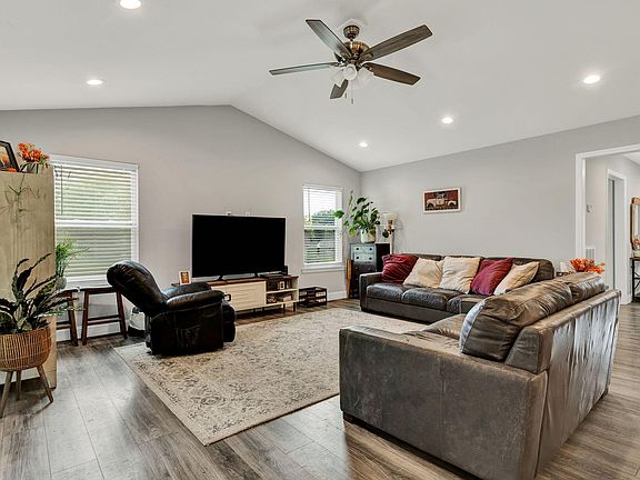 Step inside to discover a bright open-concept floor plan with a split-bedroom design, featuring 3 bedrooms and 2 bathrooms. The spacious primary suite includes a walk-in closet, double vanities, a relaxing soaking tub, and a separate shower. Elegant finishes throughout the home include tall ceilings, Pergo flooring, granite countertops, cultured marble vanities, and stainless steel appliances.