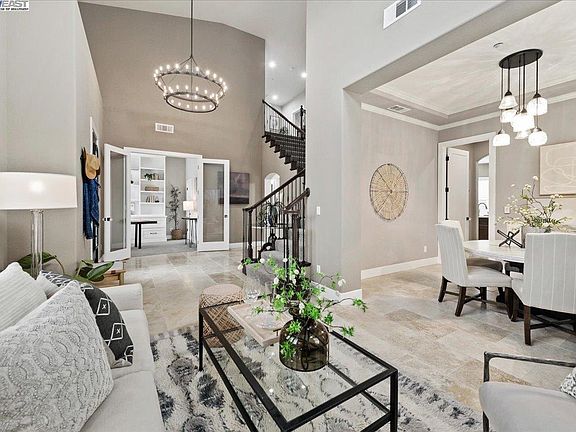 Welcome to this stunning South Livermore wine country home! This completely remodeled North East facing home features the kitchen as the heart of the home. With luxury appliances, sleek quartzite countertops, and a beautiful glass backsplash. Just off the kitchen you will find the butler’s pantry and temperature-controlled wine cellar. The downstairs bedroom offers built in cabinetry, custom closet system and is just steps away from a full bathroom with walk in shower, upgraded fixtures and much more. You will be welcomed into the primary bedroom with a spacious reading nook, double walk-in closets and a bathroom of your dreams, featuring marble countertops, walk-in shower and a free-standing tub. Outside you will enjoy a private backyard oasis with swimming pool, hot tub, built-in grill, gas fire pit, with plenty of space to relax, garden and entertain. The solar system with Tesla Power Wall keeps the lights shining and the energy bill low. Located in the highly sought after “Oaks” neighborhood with endless trails, local wineries, easy commute and award-winning schools this home offers a perfect blend of comfort and convenience.