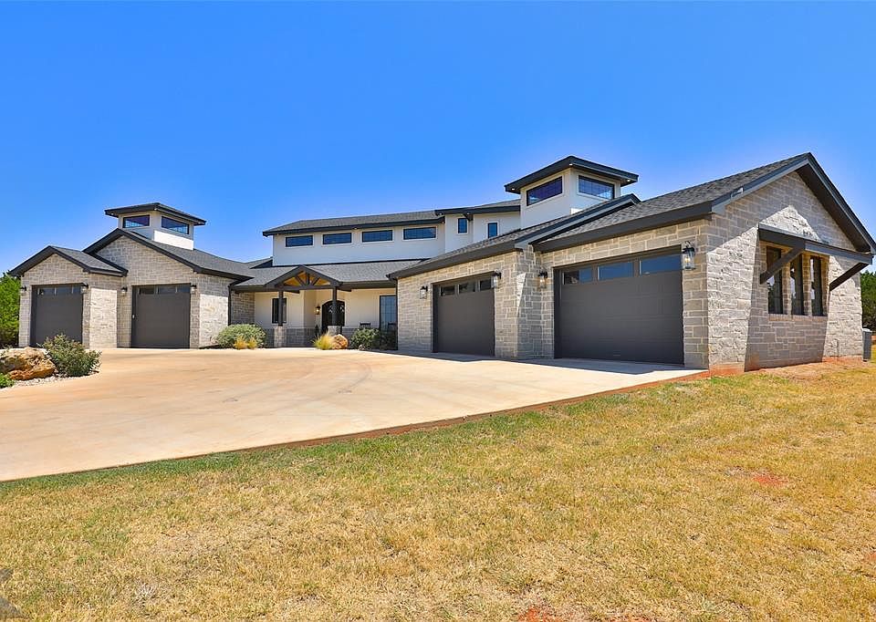 Gorgeous property in Buffalo Gap! Custom built Kyle Paul home - Jim Neds Schools - Buffalo Gap Elementary. This home sits on 10 acres of the most luxurious gated subdivision in Taylor County, The South Fork Ranch. The home is complete with 4 bedrooms, 3 full baths and 2 half baths, spacious main area for relaxing and entertaining, a massive second living area upstairs, two separate 2 car oversized garages that will even fit a boat, professional interior finishes, followed by a heated pool and spa, outdoor kitchen, beautiful landscaping, and the best views around.