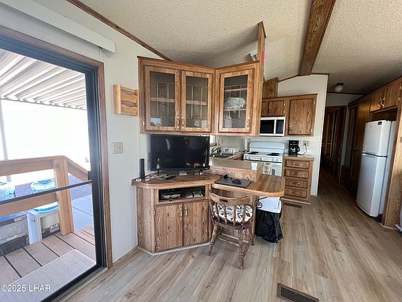 New in Q Mountain Vista near many winter vendors, discount grocer and the authentic, yummy foods of Tyson Wells & the Big Tent, this totally fenced lot with an adorable updated 1987 Park Model awaits your presence! Recently painted inside, the windows & blinds are all new this year. You'll find comfort in new wood plank flooring and fresh paint throughout the home, as well as a new sink, cabinet, faucet and toilet in the bathroom. The owners will also convey with the sale their portable washing machine which they say works better than a traditional one! Just hook it up to the kitchen faucet! There is a new wooden porch at the front slider door and new wooden stairs at the back door. In the backyard is a new 10 x 12 ''Tuff'' shed for an additional storage option or run a water line to make it your laundry room! The new covered concrete patio makes it an easy decision to sit outside to relax and feel the breeze of the day. The front Mexican brick fence with wrought iron swing gate and extended concrete entry is a curb-appealing addition to this space. This is the perfect purchase for snowbirds and full-timers alike. Make it yours and join the fun at Q Mountain Vista