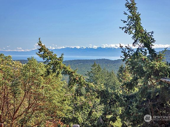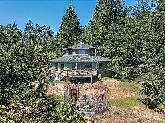 Peaceful and serene, this special octagon custom home on 9.9 +/- ac is graced with towering old growth oaks, fir and wildflowers. Amazing south facing forever views of Olympics, Mt Rainier, Straits, and San Juan Island. This stunning light filled retreat is bordered by conservation land and near Land Bank. Over 3770 SF, 3 bedrooms, 1 3/4 bath, yoga/retreat room, second kitchen, open floor plan, hardwood floors, vaulted ceilings with large beams, 3 decks, slate entry, 2 laundry areas, extra bonus rooms in garage. 2 Mini splits, plus wood stove, new Starlink High speed net included for work from home ease. Portable Carport, catchment for irrigation, yurt included. Fenced garden area. Over a mile of walking trails with seasonal stream. By APPT