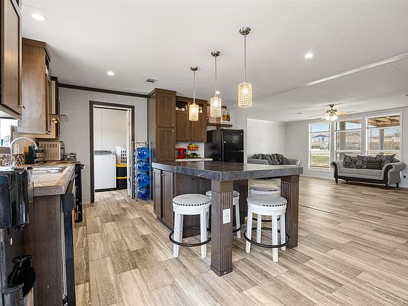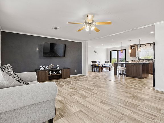 Step into a home filled with natural light and an incredible sense of space. This property is not only beautiful but also accessible, as it qualifies for FHA, USDA, and Down Payment Assistance programs. This move-in-ready 4-bedroom, 2-bath home in Kyle features an open-concept floor plan with elegant wood-look flooring that flows seamlessly through the main living areas. The living room is enhanced by a stylish accent wall, adding a modern touch to the open layout. The kitchen is a chef's delight, boasting rich cabinetry, stylish pendant lighting, updated appliances including a sleek range hood, and a central island with seating—perfect for casual meals and entertaining. It opens up effortlessly to the dining and living areas, and a dedicated laundry room is conveniently located nearby, creating an inviting space for gatherings. The primary suite is a peaceful retreat, easily accommodating a king-sized bed. Its luxurious en-suite bathroom is equipped with dual vanities, ample storage, and a large walk-in shower. Three additional bedrooms provide flexibility for a growing family, a dedicated home office, or guest quarters. Outside, the home's features are just as impressive. A 4-car driveway provides plenty of parking, while the covered front porch offers a relaxing spot to enjoy your morning coffee. The large, private fenced-in backyard is an entertainer's dream, with plenty of room for outdoor activities. This home offers the best of both worlds, combining convenience with suburban tranquility. It's connected to city sewer and water—no septic needed—giving you one less thing to worry about. Located just minutes from I-35, you'll have quick access to shopping, dining, and schools.