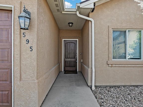 Welcome to 595 Teatro Court. Built in 2017, this 3 bedroom, 2 bath home offers a modern open floor plan in the Bella Dimora subdivision, also known as The Legends. At just $72/month, the HOA takes care of all landscaping, irrigation, and snow removal, giving you a true lock-and-leave lifestyle. The kitchen stands out with beautiful cabinetry, granite countertops, and a functional layout that opens to the living and dining spaces. The primary suite features a large walk-in closet and a 4-piece bathroom. Outside, you’ll find a fully landscaped and fenced yard with a covered patio which is perfect for relaxing without the upkeep. Location is another highlight: close to the hospital, schools, shopping, and the upcoming Grand Junction Rec Center.