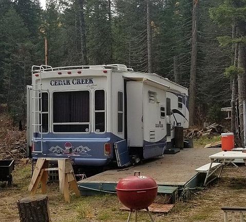 Enjoy your time camping creek side or build your home nestled on three adjoining lots on this wooded mountain paradise. Property is located near Cascade Reservoir and Campbell Creek boat ramp/dock. No CC&R's or HOA fees, is approx 200' from paved road making this a great location to camp out and enjoy the outdoors. Minutes away from Tamarack, golf and dining options. Enjoy hiking, biking, ATVing and snowmobiling on nearby public lands. Price includes 2003 34' Cedar Creek Fifth Wheel. Electricity/meter installed on property.