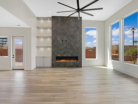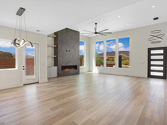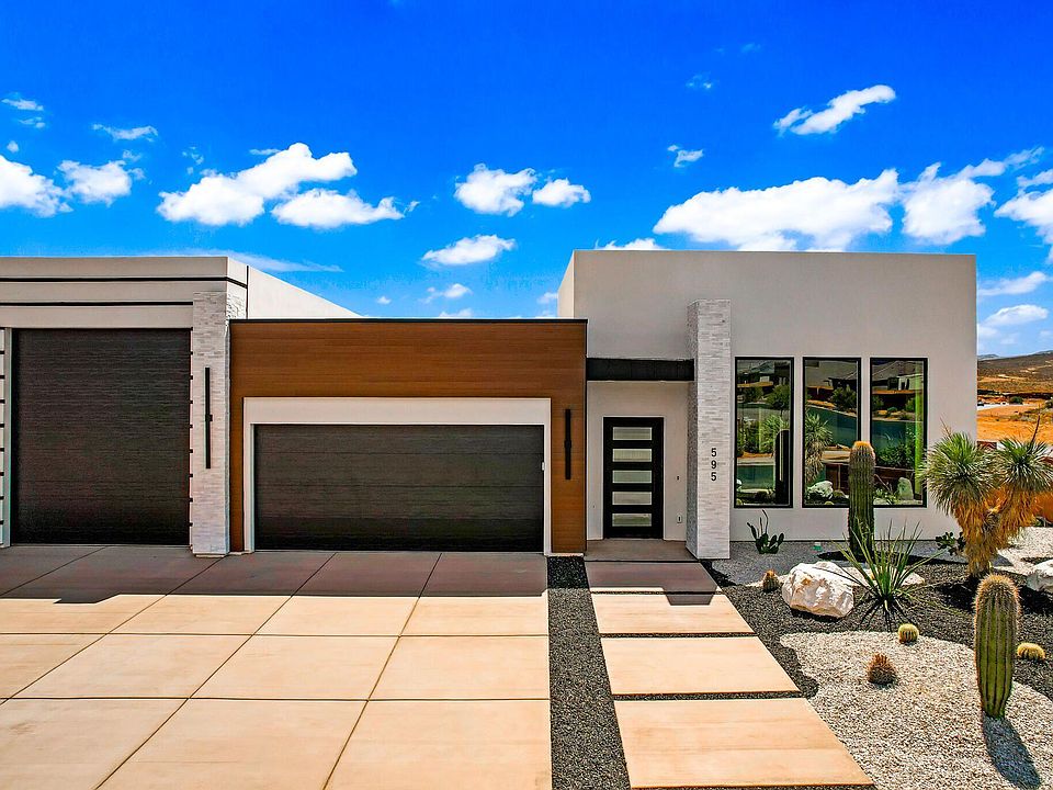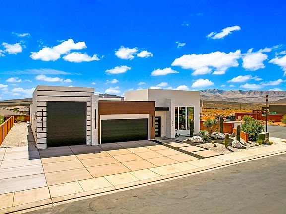 This Baja California style masterpiece is situated perfectly on a corner home site capturing 360 degrees of incredible Ivins scenery. Home features rooftop deck lookout, RV garage, Luxurious lighting package, high end GE cafe appliances, massive level 8 quartzite countertops waterfall island. Fingerprint resistant shatter proof acrylic melamine modern cabinets with walnut finishing. Now Showing!