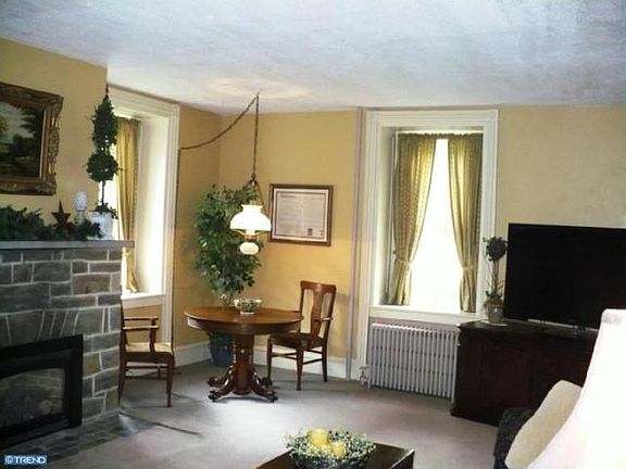 This Circa 1801 stone farmhouse boast privacy and spaciousness. Brazilian cherry hardwood floors in Dining room and kitchen. Custom kitchen with cherry cabinets, corian counters, center island and top of the line appliances. Open stairway. Large formal living room with fireplace, spacious formal dining room with fireplace, original pine plank flooring. Beautiful in-ground pool and custom built pool house with kitchen and bath. Oversized 4 car garage. Beautiful landscaping. Everything redone. High efficiency heat pump an dpropane hot water. Steam/oil back up. Central air. Humidifier.