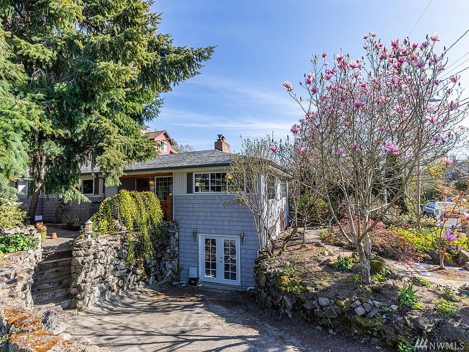 Private setting - 2,800+ sq. ft. fixer is just waiting for your own personal updates. Home is tucked away near end of quiet, dead-end street & has multiple landscaped spaces to enjoy including private tiered garden. Oak hardwoods & slate flooring on main & loads of natural light. Master w/ ½ bath & french doors to garden. Huge family rm, bonus rm, 3/4 bath, utility rm & shop on lower w/ great ceiling height. 2 fireplaces. Solar panels! Nice,walkable neighborhood. So much potential here.