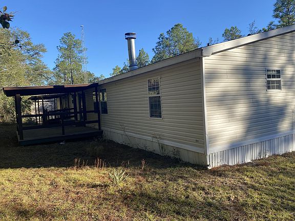 BRAND NEW CARPET AND AC HEAT PUMP HAS BEEN INSTALLED. SPACIOUS 2005 5 BEDROOM 3 BATH DOUBLE WIDE MANUFACTURED HOME ON ALMOST AN ACRE.Just had a fresh Pressure Wash Job done on the outside including the Oversized Driveway. New Front Stairs just installed along with some Skirting. HANDICAP RAMP AT BACK DOOR ENTRANCE WITH ROOF. Detached Garage has good framing but will need some outer plywood. Level concrete floor, workbench and shelving. A LARGE WOOD DECK AND COVER OFF THE LIVING ROOM. Good sized Laundry with hookups. Large sized Kitchen with plenty of cabinet space and an Island. Wide open spacious living room with Fireplace. Inside was just professionally cleaned. Large Formal living room and informal living room. Nice Simulated Wood Vinyl flooring in kitchen, bathrooms and laundry. Master Bedroom offers a Huge Walk in Closet, Master Bath with both His-N-Her sinks, separate shower and large oval soaking tub. Most window treatments are there. Appliances all there including 2 Refrigerators. PRIVATE with Mature trees and shrubs surrounding the perimeter. Deer run wild on the property hence the pic I took of the Deer while I was there:)