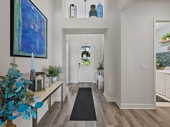 Come see this beautiful, spacious 4 BR / 2.5 BA lakefront home! High ceilings, large windows, and a covered/screened patio provide for an open, airy feel and indoor-outdoor living. Some of the many upgrades include: Core-Fill 500 in exterior CBS walls for strength and energy-efficiency, HVAC UV light, Roller shades, Seamless master shower enclosure w/ dual shower heads, Gas range, extended kitchen island and buffet fully fenced yard and so much more! The house has tile floors throughout, with luxury vinyl on top in the living areas, which can be easily removed to revert to the underlying tile. Located in a gated community with resort style swimming pool, this property offers everything you need to enjoy the best Florida lifestyle!