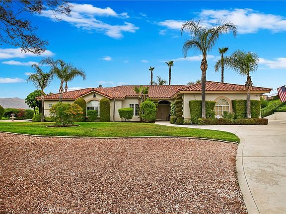 Custom home nestled in the highly sought after Canyon Crest area regarded as one of the finest locations in Riverside with spectacular panoramic views of the surrounding mountains. This much desired single story is privately situated on over l/2 acre with 2576 s.f., 4 bedrooms and 3 baths. One of the bedrooms has been transformed into an office, catering to the needs of a modern lifestyle. In the heart of the home is a spacious kitchen that opens up to the inviting family room, creating a harmonious space for entertaining and relaxation. Vaulted ceilings enhance the interior giving an air of elegance and openness. Some of the many upgraded features include crown molding, recessed lighting, ceiling fans, 2 air conditioners, quartz kitchen counters, wet bar, walk-in pantry and much more. A beautiful sparkling pool and spa provide a nice retreat on warm days with stairs leading down the back of the property allowing easy access to fruit trees and playground area for children to enjoy. The 3 car garage with additional parking space ensures ample room for vehicles and storage. The front yard has been recently designed with minimal upkeep. Situated on a peaceful cul-de-sac, this residence is located in a wonderful neighborhood. Enjoy the Canyon Crest Country Club nearby offering an 18-hole golf course, tennis courts, pickleball and pool. This home offers the perfect blend of privacy and luxury. Don’t miss out on the opportunity to experience this fantastic custom home!