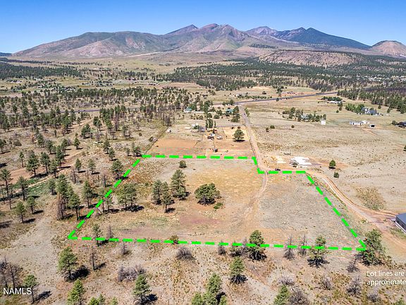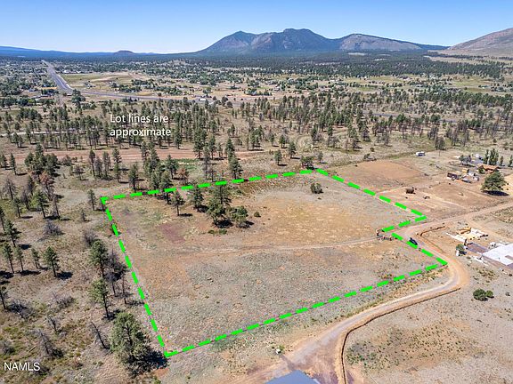 Borders National Forest on 2 sides! Located just a short drive from restaurants, shopping, grocery and historic downtown Flagstaff. This fully fenced 5 acre parcel offers sweeping views of the San Francisco Peaks, a gentle roll in elevation, and onsite utilities including a septic system. A solar powered wrought iron gate with keypad access is also in place. The surrounding properties are well kept custom homes all on similar size lots. Design and build your custom dream home on this one of a kind property.
