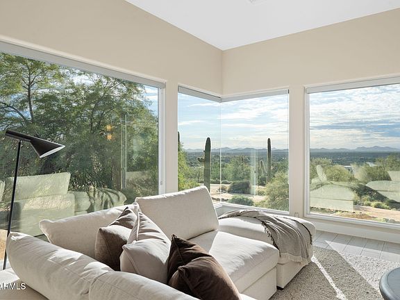 Valley and Mountain views are available within reach in Cave Creek on the west side of Black Mountain. Every room frames a mountain, city, or valley view — it's a visual masterpiece. Spacious split floor plan with 3 ensuite bedrooms, including a primary suite with fireplace, private patio, and spa-like bath. Desert charm meets modern luxury in this stunning home with views that will make you stop mid-sentence.The kitchen and dining open to a serene courtyard, perfect for indoor-outdoor living. Dramatic two-way fireplace, panoramic butt-glazed window, and 3-car garage. Sunsets so good, you'll have to pinch yourself. These views and sunsets are forever.