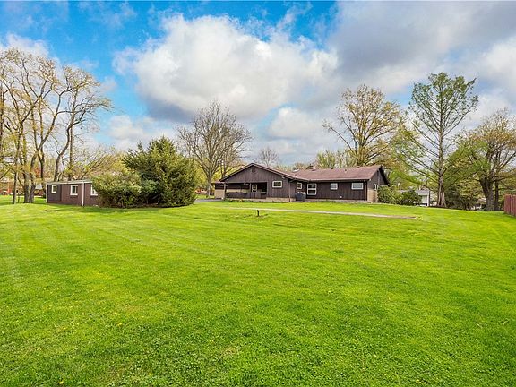 Welcome to 5950 Murray Avenue! Think of Bright Morning Sun & Soft Evening Sunsets! All with one level living, level Driveway, Plus 3 Car detached Garage! Delight in the Front cover porch w/beautiful Pebble-stone floor, serene living room drenched with delightful morning sun, and a warm spacious dining room w/gas or log burning fireplace. Family Rm with special hand-selected Wormy Chestnut Paneling, built-in Bookcases & Desk, Beamed Ceiling, wet bar + just a few steps to a full bath. Great Backdoor Entry off deck with 2 closets. Eat-in Kitchen features Custom built-in Cabinets & Pantry with Pull-out shelving 1st fl Laundry.