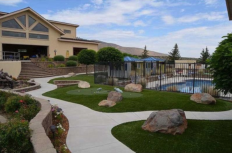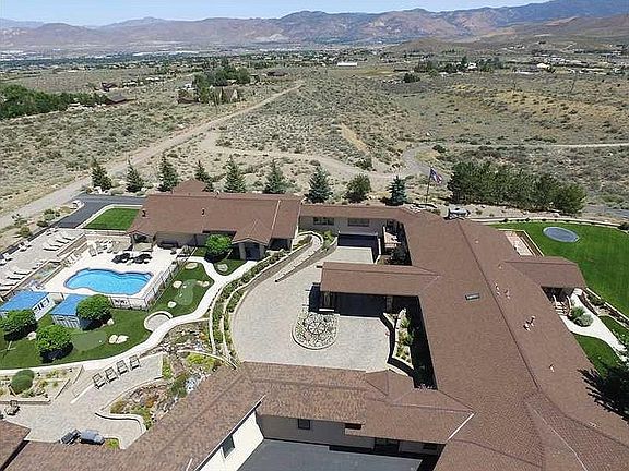 Unlike non other this single-level living estate offers everything you can imagine. Providing handicapped accessibility to all areas of home and within a 20 minute drive to the Reno/Tahoe International airport, 20 minutes to world class skiing and casino entertainment is merely minutes away. Perfect for entertaining or corporate retreating as there is ample space to park with a twelve car garage including two RV bays and plenty of space to park outside. You will love watching the sparkling city lights from the private outdoor heated pool or spa with cabanas. An indoor regulation size basketball court which can be converted to a volleyball court, two lane bowling alley and gym / dance studio. A separate private wing for guests which includes a full kitchen, living and dining area overlooking the Sierra mountains, master bedroom with bath and a second en-suite bedroom. Entertaining is a breeze with the commercial size entertaining area overlooking the Biggest Little City, Reno, NV