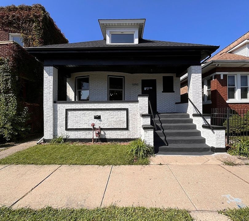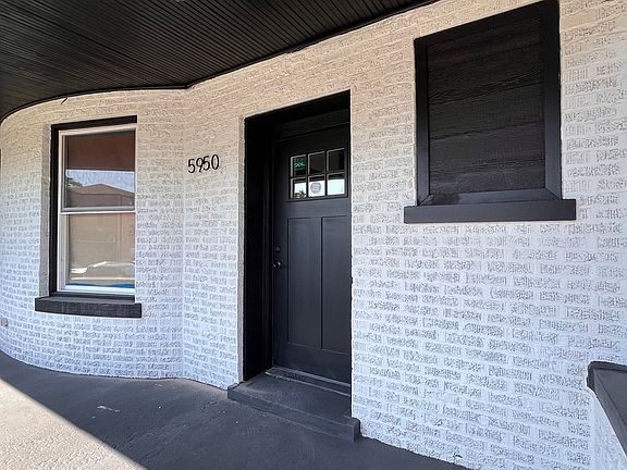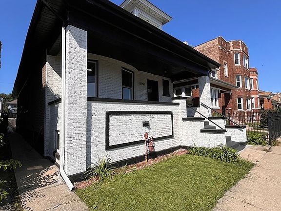 From the moment you arrive, you'll notice the modern black-and-white exterior that enhances the unique curved facade and spacious front porch. Inside, the architectural integrity shines with refinished original hardwood floors and an open floor plan that flows seamlessly from the foyer to the living room, dining room, and kitchen. The kitchen has been fully updated with custom navy cabinetry, sleek black countertops, and modern finishes. The main level offers three generous bedrooms and a large full bathroom. The open basement provides excellent potential for expansion, featuring one additional bedroom and bathroom, a laundry hookup, and a convenient sink-perfect for creating additional living space or a private suite. Step outside to a fully fenced backyard, offering privacy and room to enjoy outdoor gatherings. This home blends historic character with modern updates, making it a truly special opportunity. Don't miss your chance-schedule your showing today!