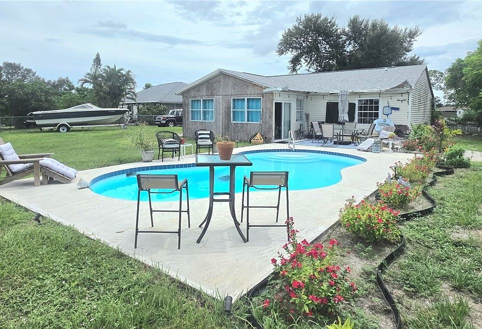 Endless Potential in North Port! This 3-bedroom, 2-bathroom home is full of opportunity, whether you’re an investor, flipper, or a homeowner ready to make it your own. Built in 1984, the property sits on a spacious .49-acre lot with mature landscaping and a fenced-in backyard perfect for entertaining, complete with an in-ground pool. The home offers an attached garage perfect for extra storage that includes laundry hook-up, plus a newer roof already in place. While the property is currently lived in, it has exterior hurricane damage from 2022 and 2024 that remains to be repaired, giving buyers the chance to update and restore it to their taste. Inside, the layout is cozy and functional, making it an excellent candidate for cosmetic upgrades and personalization. With its deep lot, pool, and convenient North Port location, this home provides a solid foundation and endless possibilities — whether you’re looking to invest, renovate, or create a charming Florida retreat of your own.