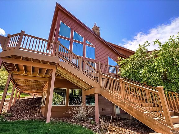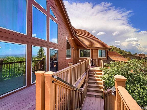 This home backs to open space and is on a private drive for wonderful privacy! The wall of windows in the great room takes full advantage of the see forever views! With a floor to ceiling wood burning moss rock fireplace this room is the heart of the home. The dining space is a step up from the great room and there is a lovely sunroom too. The kitchen has been updated with stainless appliances, maple cabinetry, slab granite counters, newly refinished hardwood flooring and has a walk in pantry. The main floor study is huge and has a built in desk and shelving. Also on the main is a bedroom, full hall bath, powder bath and laundry closet. On the upper level is the spacious master suite with new carpet and a soaring 2 story vault. The home is priced to reflect the need to update the 5-piece master bath. It has new flooring but will need the new buyers personal touch. There is also a large walk in closet and a secondary closet. The alcove within the master suite could be used as a sitting area or maybe a second study. On the lower level there is a family/recreation room with a moss rock fireplace with a gas insert and a sizable bar area. The secondary bedrooms are large and share a 3/4 bath. The utility room has a newer furnace and hot water heater. In the storage area you will find shelving and ample space for all of your things. There is a finished 2 car attached garage with lots of mounted cabinets. The roof is new coated stamped metal and all of the decking has been replaced with a long lasting composite product. There are multiple outdoor living spaces including a private flagstone patio with built-in rock firepit and waterfall. There are rock walls all around the property and many perennials and established Gambel Oak and evergreens. Views of the city, Arrowhead Golf Course, red rock formations and foothills. All this in beautiful Roxborough Park, with miles of trails and abundant wildlife. This home was well loved by the previous owners and it shows.