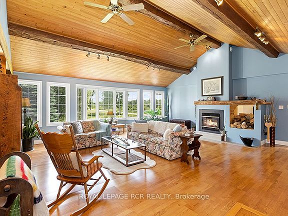 Escape to your own private sanctuary. This beautiful 4-bedroom, 3 bathroom bungaloft rests on 150 acres of land complete with barn. It perfectly blends rustic charm with modern comfort and offerhis endless opportunities for outdoor adventures and peaceful living.This unique bungaloft design features ample space for family and guests offering over 3500 sq ft of finished living space. The main floor boasts a family room with soaring vaulted, beamed ceilings, a cozy wood burning fireplace, and expansive windows that invite natural light. Theres an eat in kitchen, an oversized living & dining area, a huge solarium, 3 bedrooms, 2 bathrooms and a laundry room but wait, theres more. The upper-level primary suite is a private retreat, complete with a unique ensuite (requires completion) a w/I closet, and a walk-out deck for enjoying your morning coffee or stargazing at night. Hardwood floors, in-floor zoned heating, and walk-in closets in all the bedrooms add to the comfort and functionality of the home. Need more room? The unfinished basement with a walk-up entrance offers potential for an in-law suite or secondary dwelling.Explore your very own network of trails for hiking, ATV riding, snowmobiling, and horseback riding. With lush hardwood forests, a tranquil creek for fishing, and open spaces for hunting, the recreational possibilities are endless.Spend warm evenings on the spacious deck, complete with 2 ornamental ponds, waterfalls, a beautiful gazebo all surrounded by gorgeous perennial gardens.Located just minutes from Orangeville and Shelburne where all of your amenities are accessible yet tucked away for ultimate privacy and tranquility. Nature, hobby farm, gardens...just imagine! Endless possibilities.