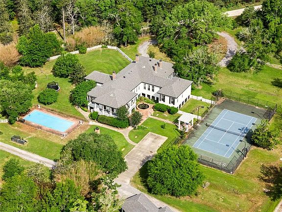 Timeless Acadian Estate on Bayou Liberty - 17.66 Acres of Southern Charm! Step back in time with this historic Acadian beauty built in 1910, nestled under ancient oaks and draped in Spanish moss along the tranquil shores of Bayou Liberty. Spanning 5,814 total square feet, this rare gem offers 4 bedrooms, 3.5 baths, and stunning architectural details including original heart of pine floors, bead board ceilings, and six-panel cypress doors that speak to the home's rich history. Modern comforts meet old-world charm with five HVAC units, a chef's kitchen featuring limestone countertops, Viking stove, Sub-Zero refrigerator, 6-burner gas range, and double ovens. The spacious primary suite, added in 1992, boasts a luxurious bath and an expansive walk-in closet. Enjoy sweeping views from the wraparound porch, or entertain with ease thanks to the estate's impressive amenities: In-ground pool and tennis court, Workshop, screened outbuilding, original fish pond and boat house with hoist and dock (134' of water frontage!) Also includes a separate 1,311 sq ft guest house with 3 bedrooms, 2 baths, and a whole-house generator. With a total of 17.66 acres of lush landscape and endless possibilities, this property is truly a one-of-a-kind sanctuary in the heart of the Bayou Liberty area. Don't miss this extraordinary blend of history, luxury, and Louisiana charm.