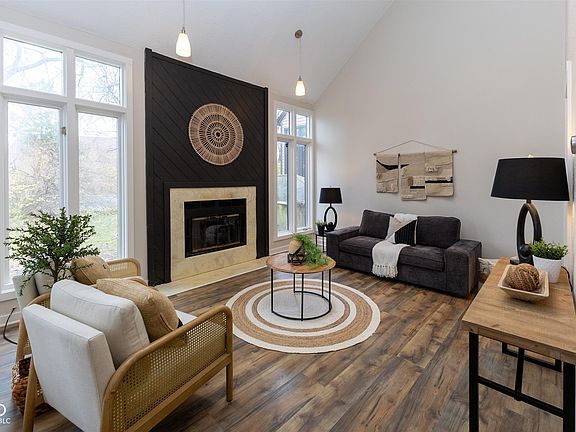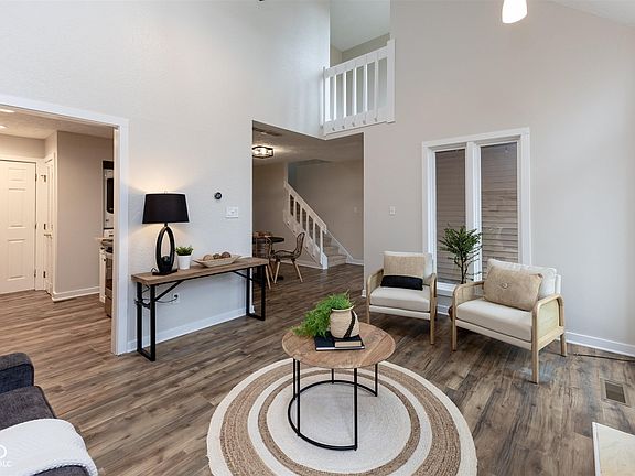Rarely available in Cedar Cove a Completely Updated 2 bedroom 1/1 bath, best in class in this price range in Fishers! Many of the updates include Kitchen with White Cabinets, Butcher Block countertops, tile Backsplash, New Lighting throughout, Paint, Beautiful Laminate Hardwood flooring main floor, Updated bathrooms with tile, flooring & fixtures, new carpet upstairs. New Sliding glass Doors, Front Door, and interior doors & windows, plus Garage Door, Plumbing and electrical updated, plus a walk in pantry added! Also HVAC, Water Heater & Water Softener - All updated! Wonderful Open Floorplan with huge Great room with 22 foot ceilings, wall of windows, plus a wonderful Fireplace, the Kitchen, Dining and Great room are open creating a wonderful flow of living space, There is a slider to a private back patio too. Upstairs includes 2 spacious bedrooms plus a loft. There is a private upstairs patio/deck off the Primary Bedroom a perfect place for coffee in the mornings. Relax and enjoy a move in ready condo that the owner takes care of the inside and the windows, doors, HOA handles roof and siding .Fabulous location near shops, restaurants and interstate. All appliances inside unit will stay with the condo! Come enjoy a Move in Ready condo with an unbelievable location!!!!