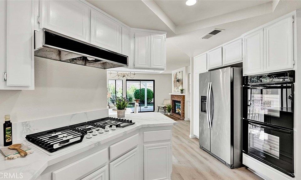 Experience the pinnacle of Chino Hills living in this stunningly remodeled residence, where over $100,000 in upgrades have transformed this property into a modern sanctuary. Nestled against the untouched beauty of Chino Hills State Park, this home boasts unobstructed panoramic views of rolling hills, wildlife, and endless skies—providing both privacy and serenity that can never be built over.Step inside to a light, bright, and airy floor plan adorned with soaring vaulted ceilings, expansive windows, and new vinyl plank flooring throughout the lower level and staircase. The heart of the home is the oversized living room with a dual-sided brick fireplace, nicely flowing into a formal dining room with designer chandelier, and a large separate family room w/breakfast nook.The showstopper is an updated chef’s kitchen featuring quartz counters, quartz backsplash, stainless steel farm sink, Whirlpool five-burner cooktop, dual Frigidaire ovens, and a large walk-in pantry with pullouts. This also has what every buyer is looking for: A spacious downstairs bedroom with adjacent full bath which makes for the perfect guest or in-law suite.Upstairs, retreat to your luxurious master suite (16’ x 14’)—a private haven with vaulted ceilings, double-wide closet organizers, a romantic tiled fireplace, and its own balcony with composite decking. From here, savor morning coffee as you watch birds and butterflies drift across the hillsides. The spa-inspired master bath impresses with a glass walk-in shower featuring subway tile and designer tile flooring, a soaking Jacuzzi tub,and dual sinks with modern fixtures.Two additional spacious bedrooms (12’ x 10’) share a stylish Jack & Jill bathroom with dual sinks and upgraded finishes.Additional highlights include: Brand-new HVAC system, indoor laundry room with overhead cabinetry (washer & dryer included),Two-car garage with built-in storage,Mature landscaping with adobe tile entry walkway,blooming flowers,and palm trees,Freshly painted interior and exterior,Gated front sitting area surrounded by flowers,Concrete tile roof for durability. The backyard is a private sanctuary, offering a covered patio, multiple sitting areas,and breathtaking sunset views over the park’s rolling hills.With no neighbors behind,you’ll enjoy the peace of nature in your own personal retreat.This rare property combines modern elegance, thoughtful upgrades, and one of the most coveted views in Chino Hills. Don’t miss the chance to make this dream home yours!
