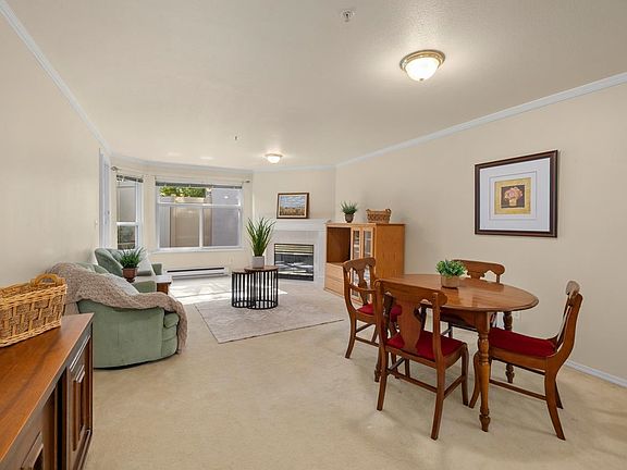 Welcome to the heart of Cloverdale! This bright and spacious 1 bedroom + den ground-floor home offers over 1,000 sq ft in a welcoming 55+ community. The open-concept living and dining area features large windows, a cozy gas fireplace, and access to your private oversized patio—perfect for morning coffee or entertaining. The functional kitchen provides plenty of storage, while the primary bedroom includes a walk-in closet. The den works well as a home office, craft space, or guest room. With in-suite laundry, secure underground parking, and a well-maintained complex close to shopping, transit, and parks, this is comfortable and carefree living at its best!