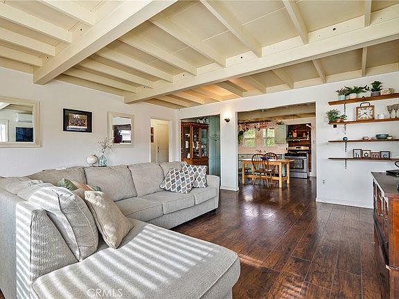This Mid-Century find at 5955 Bajada Ave. features 2 bedrooms, 1 bath and spans 1,084 Sq Ft on a generous 7,405 Sq Ft lot. After parking your vehicles in the spacious driveway, you'll be welcomed by a vibrant array of succulents and mature shade trees adorning the front yard as you approach the modern entry door. Stepping inside, discover an inviting open living area with large picture windows, exposed open wood beam ceilings and laminate flooring throughout. This welcoming living space flows seamlessly into a charming eat-in kitchen, perfect for whipping up your favorite dishes. When it’s time to unwind, choose between two cozy bedrooms. One offers a view of the side and front yards, while the other looks out the side and backyards, both conveniently located near the full main bath. As you venture outdoors, you’ll find a delightful back yard featuring a koi pond, a cooling stock tank with filter, and a vintage trailer that adds character to this eclectic space. For those who love to create, there’s a spacious workshop eagerly awaiting your innovative projects. Within walking distance to the vibrant downtown area with trendy eateries, entertainment, and shopping – plus easy access to the highways – getting to where you need to be is hassle-free! Do not miss the opportunity to personalize this charming and cozy haven! Please view the Virtual Tour for more details, including room dimensions.
