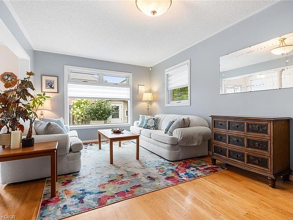 Inviting curb appealOpen-concept main floorReal hardwood flooringRenovated timeless white kitchenSleek finishesAmple cabinetryStainless steel appliances