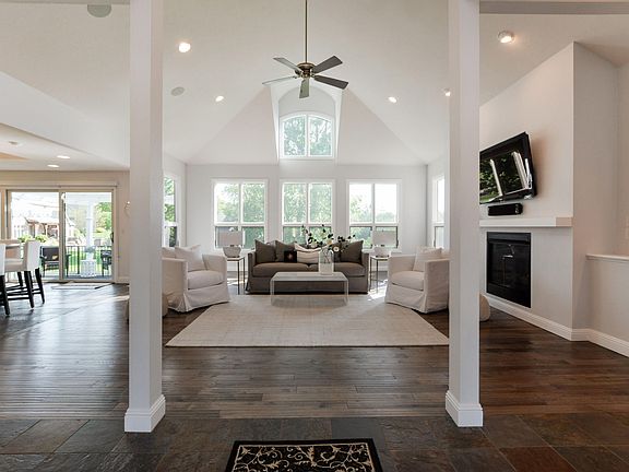Gorgeous 4bd/2.5ba modern style home in Rivercut Golf Community is both elegant & pristine with stone, stucco & brick exterior. On the interior there are many custom features such as 14' ceilings, coffered ceilings, columned arches, & cathedral ceilings. The kitchen features top-of-the-line appliances, pantry, & a huge concrete kitchen island perfect for entertaining. French doors open to a large master suite with a gas fireplace & its own private covered veranda. Master bath includes a jetted tub, walk in shower & large walk in closet. Beautiful walkout basement features 2 bedrooms, 1 bath, bar area, living area with fireplace, theater room, wine room, John Deere Room & storage everywhere! Extra deep 3 car garage allows for extra storage space. Oversized windows & glass doors allow lotsof natural light lead to the large balcony where you can enjoy spectacular views of the beautiful sunsets. This the perfect home for privacy yet still in a wonderful community.