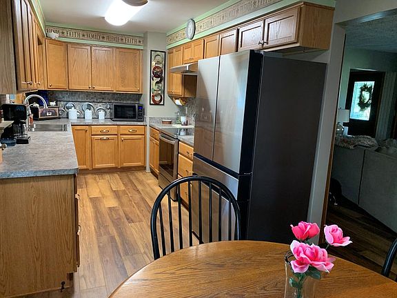 Beautifully updated 4 bedrooms, 2.5 baths home sitting on 2+ acres in Wynford School district. 2.5 car attached garage. 2 outbuildings. 3 living areas. Lots of storage. Amazing front deck, Gorgeous, fully applianced kitchen . Home features entry, Large living room, Eat in Kitchen with door to back porch and fenced yard. to left of dining area is french doors separating a family room and main level bed w/on-suite (perfect area for in-law suite if needed). from main level you go up 6 steps to 3 bedrooms and a second full bath.OR from main level you go down 6 steps to 1/2 bath on left, laundry room on right, or straight ahead to 3rd living area w/wood stove and door to oversized 2.5 car garage. Lower level adds a bonus rec room , a Large storage room, a furnace room, and an extra additional room for storage. Nicely manacured lot. Mature trees in front provides seclusion. Prior owners documented roof new 2012, wiring updated 2009, water heater new 2007.List of recent updates on file.