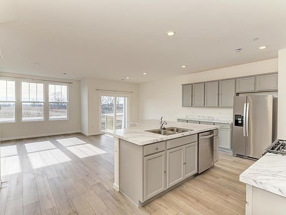 Experience modern living at its finest with this beautifully designed, brand-new townhome located in the highly sought-after Naperville area. Offering 3 spacious bedrooms, 2.5 bathrooms, and an attached 2-car garage, this home provides the perfect blend of comfort and style. Enjoy breathtaking pond views from the sunroom, kitchen, and great room, creating a serene and peaceful ambiance throughout the home. The open-concept layout is filled with natural light, highlighting the stunning finishes and modern updates, including a sleek kitchen with light gray cabinetry, a huge center island, and all-new stainless-steel appliances. The master suite is a true retreat, featuring a luxury updated bathroom with double sinks, a walk-in shower, and an expansive walk-in closet. With light gray carpet throughout and a private concrete patio outside, this townhome is ideal for relaxing or entertaining. Located in a top-rated neighborhood with easy access to shopping, dining, and highly ranked Plainfield Schools, this home is also conveniently close to highways 59, 55 and 88. Voucher section 8 is welcome!