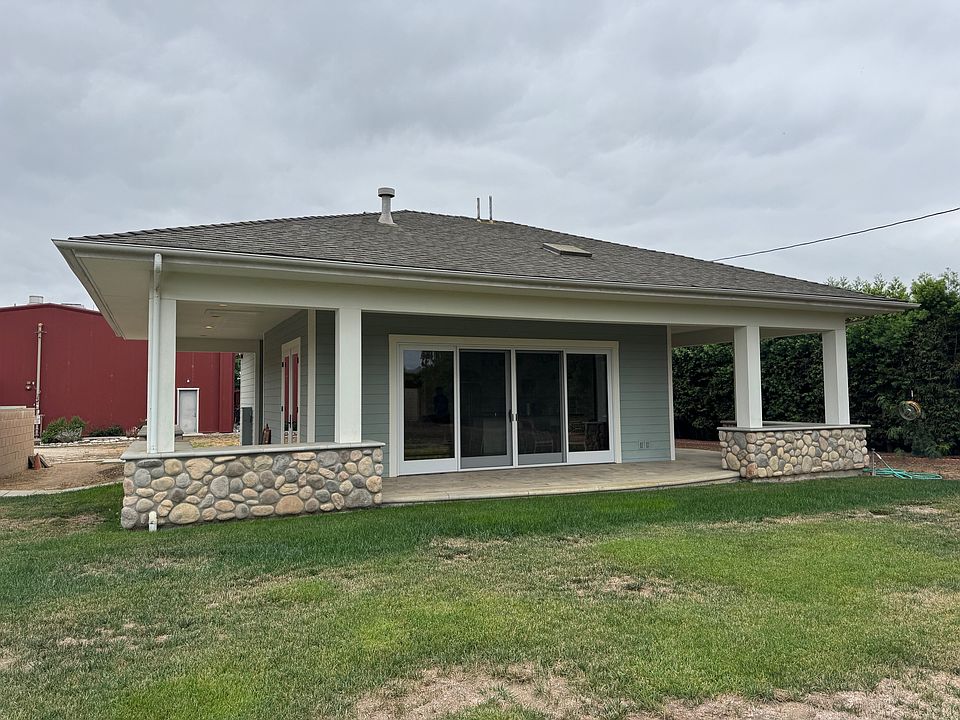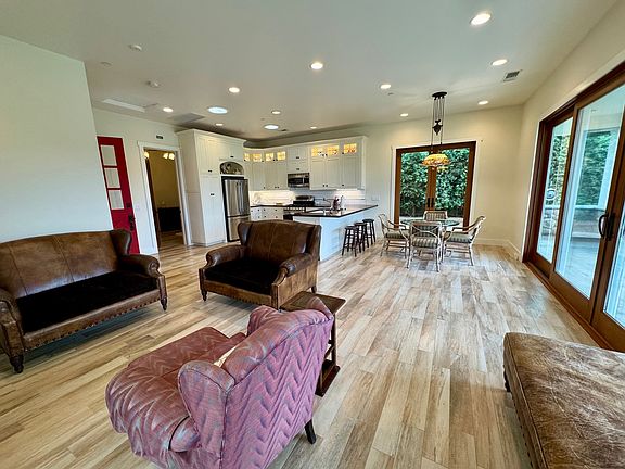 Built in 2012, this single-story 1 bedroom, 1 bathroom guest house offers modern comfort in a peaceful countryside setting. Enjoy wood-look tile floors, vaulted ceilings, and an open-concept kitchen with easy-close drawers, stone countertops, and stainless steel appliances. Sliding glass doors fill the home with natural light, while LED lighting adds efficiency and style.