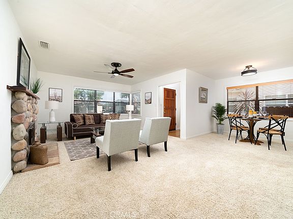 Get ready for this beautiful, well maintained, move-in ready home situated in Lakewood Gardens. Great floorplan with large, open living room space with a stone wood burning fireplace. Brand new interior paint throughout, you’ll be sure to appreciate the fresh new look and feel this home has to offer. Upgrades include central A/C and heating, dual pane windows, updated electrical panel, upgraded plumbing supply lines (PEX) and drain lines (ABS) with cleanout installed. The expanded kitchen allows for extra space and flexibility. The bathroom features both a tub and separate shower stall with a new sink faucet, mirror and hardware. The home is furnished with window blinds throughout, ceiling fans, new door hardware and the rear bedroom has a sliding glass door with backyard access. The backyard oasis has a covered patio area, beautifully decorated with potted plants, privacy fence, and you’ll enjoy the delicious Meyer lemons, limes, Valencia oranges and tomatoes as well. The detached 2-car garage has washer and dryer hookups, utility sink, automatic garage door, and built-in workbench with cabinets and even extra covered storage space behind the garage. The extra-long, gated driveway allows for multiple cars or even room for boat/RV parking. This Lakewood Gardens home has an optional use to the neighborhood clubhouse & pool facility for $200/year. It's only offered & available to Lakewood Gardens' residents. There are a lot of fun activities throughout the year put on by the association. Membership is optional and not required, no HOA.