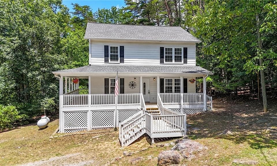 Fall in love with the classic farmhouse feel of this quaint 3-bedroom, 2.5-bath home nestled on a peaceful 1.89 acre lot. From the moment you step onto the inviting wrap-around porch, you’ll be drawn into the warmth and charm of country living. All three bedrooms and two full bathrooms are conveniently located upstairs, while the main floor offers a welcoming layout with a half bath and a spacious laundry room. The kitchen boasts white cabinetry, stainless steel appliances, and tile backsplash. Enjoy a private, wooded backyard perfect for relaxing. The septic tank has just been pumped, and the windows were replaced five years ago, offering added peace of mind. Located in a quiet community with lake access through the HOA, this home offers the perfect mix of tranquility and recreation. Don’t miss this cozy gem—ideal for those seeking a peaceful lifestyle with modern comforts and timeless country charm.