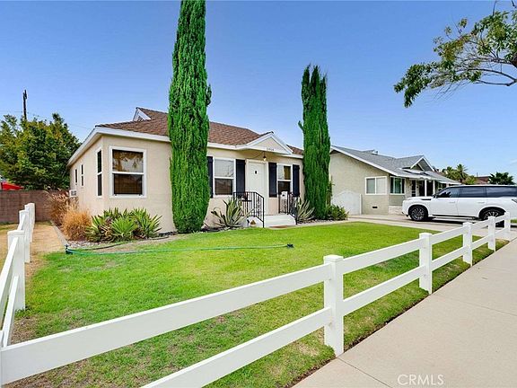 This charming two-bedroom home, featuring an additional office/den, blends modern updates with timeless appeal. Step inside to discover a bright and airy living space, featuring wood plank flooring, dual-pane windows, and a remodeled kitchen with granite countertops, stainless steel appliances, and ample cabinet space. The renovated bathroom continues the home’s fresh, updated feel, while an inside laundry area adds everyday convenience. The backyard is designed for relaxation and entertaining, complete with a covered patio, built-in barbecue area, and lush grapevines that create a peaceful, inviting atmosphere. A long driveway leads to a detached two-car garage and a versatile storage shed/workshop, providing ample space for hobbies and projects. Additional highlights include block walls in the backyard, lovely landscaping, and a premium lot of over 5,600 square feet. Whether enjoying quiet evenings under the grapevines or hosting gatherings on the spacious patio, this home delivers comfort and lifestyle. Stephen Foster Elementary is assigned to this home, along with Mayfair High. Close to several freeways and shopping.